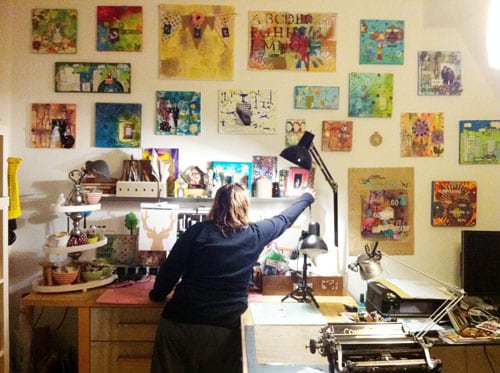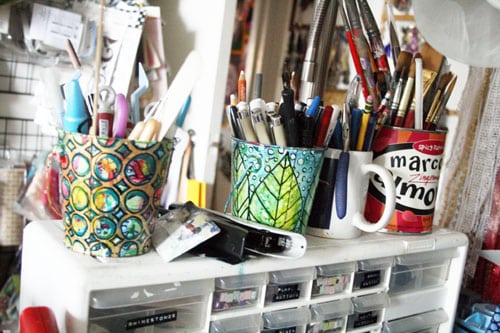 As you can see, I have a working studio. It’s not a pretty Pottery Barn catalog studio. But I can find absolutely anything I’m looking for in under twenty seconds. Because what my studio lacks in beauty it makes up for in functionality. In order for your space to be functional it needs to be filled with things that you actually use. Read more here.