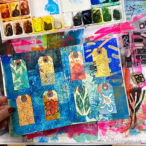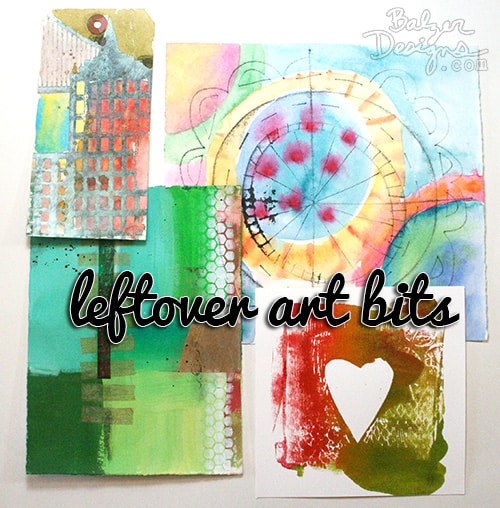 My monoprints don’t always turn out the way I had hoped they would. But I don’t throw the bad ones away. I keep them to cut up and use in my art journal! I also use a lot of little art projects — or art bits — that aren’t quite large enough to be anything on their own, plus scraps.