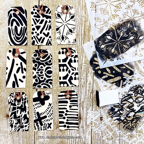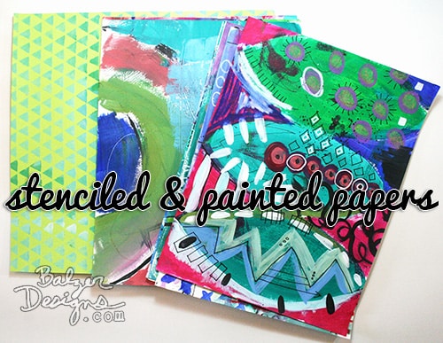 Sometimes when I’m not feeling the muse to make finished art, I stencil or stamp or paint some papers for later use. I tend to use drawing papers in a variety of weights for this. Sometimes even simple printer paper! I love having these decorated papers in my stash to pull out when I need them!