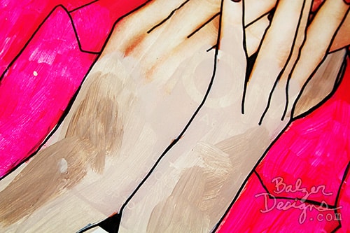 You can see that I outlined the magazine images on both pages with a black line. What looks like paint on the images is actually just marker.
