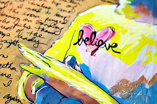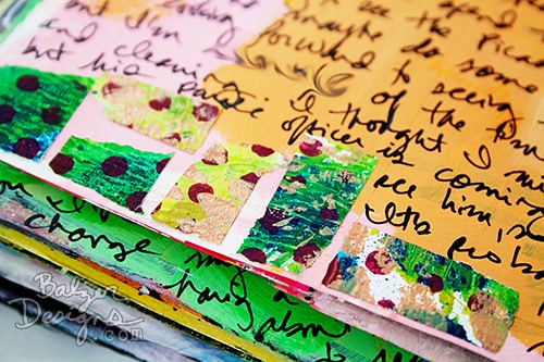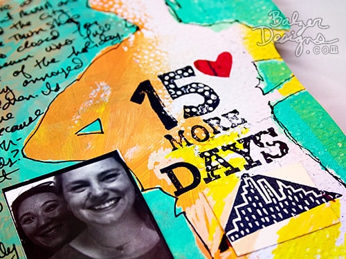 It’s so fun to stash photos in my art journal! This black and white photo strip is a great addition to this colorful page.