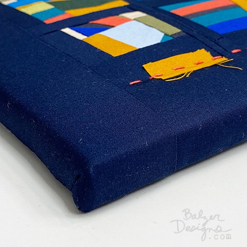 In essentials, I made a mini quilt top, added batting, and then wrapped it around a pre-stretched canvas.