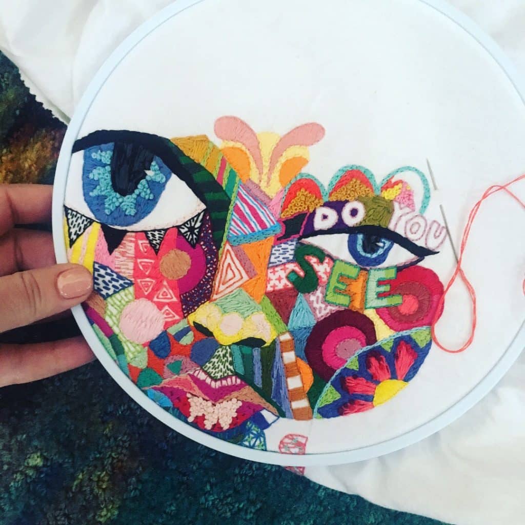 I also love hand embroidery. It’s my go-to travel/TV watching project. This is a project I’m currently working on: