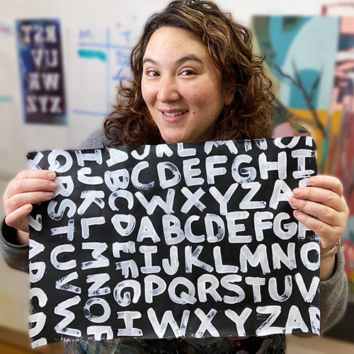 Sulphite paper is one of those “humble heroes” in my studio. In the photo I’m holding up a piece I painted black and then lettered on top of.
