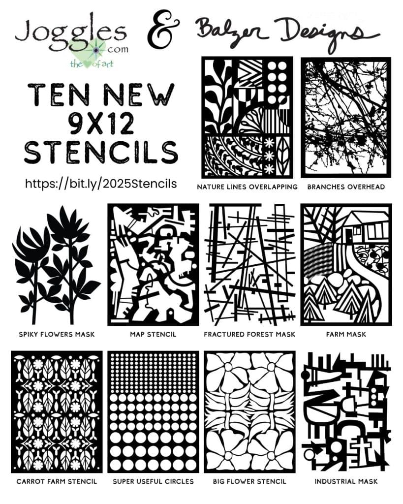 I’m super duper excited to share that I’ve partnered with Barb at Joggles to bring you ten new art stencil designs! This was my first time designing 9×12 stencils and I really enjoyed the challenge and came up with some super fun stencils that I think you’re going to looooove using.